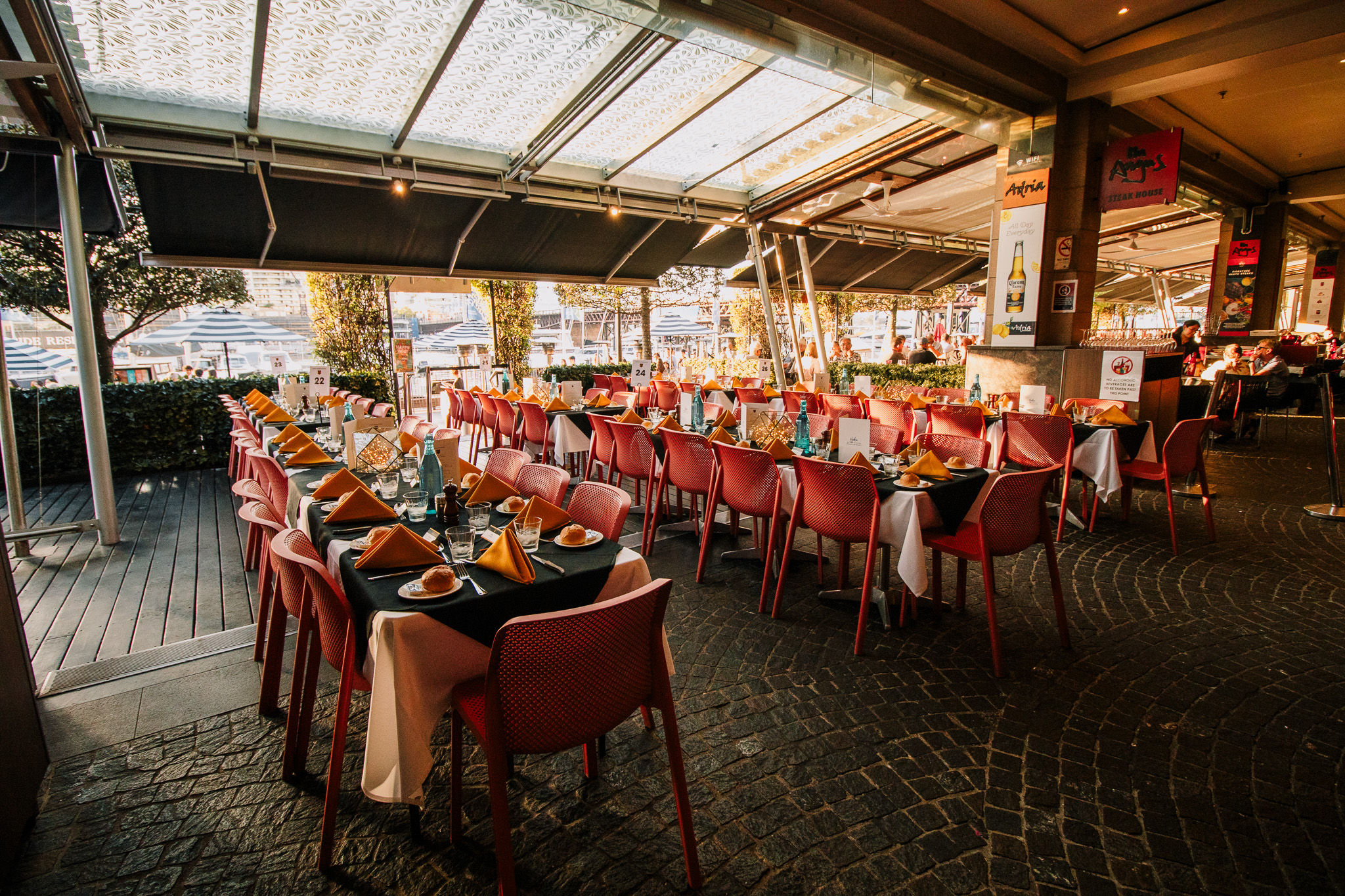 Adria, the boutique gem of Nick’s Restaurant & Bar Group, brings Adriatic coastal flavours to Darling Harbour in a warm, rustic waterfront setting. The menu showcases fresh local seafood, rotisserie meats and Mediterranean pastas, complemented by a lively public bar. Resident DJs create sunset cocktail vibes on Saturdays, making Adria ideal for canapé receptions and celebrations. With flexible dining spaces suited to business lunches or exclusive events, Adria pairs relaxed harbour charm with sweeping foreshore views for memorable gatherings.